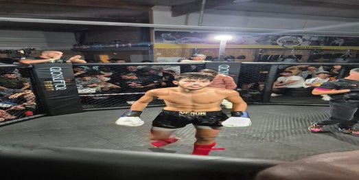Nino fait un combat serré avec son adversaire sur les 2 premiers rounds, face à un combattant expérimenté dans une ambiance électrique. Dénouement sur le 3ème round avec beau travail de genoux. L'arbitre arrête le combat et Nino sort vainqueur.